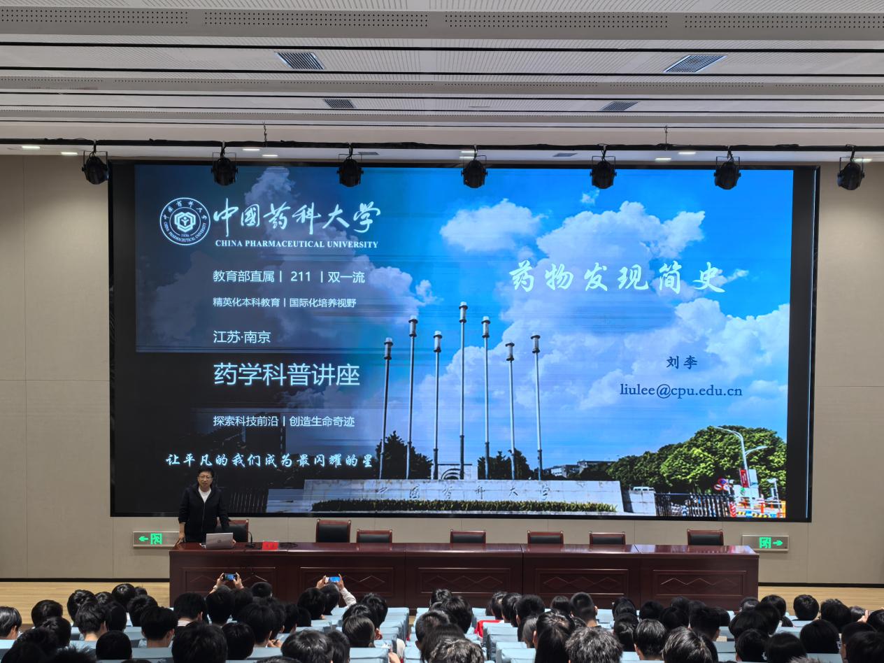 讲座伊始,刘李教授以《药物发现简史》为题,从医药关联内涵切入,系统梳理药物发现发展脉络,结合牛痘疫苗、青蒿素等经典科研案例娓娓讲述,深入浅出普及药学基础知识,带领同学们领略医药学科独特魅力。